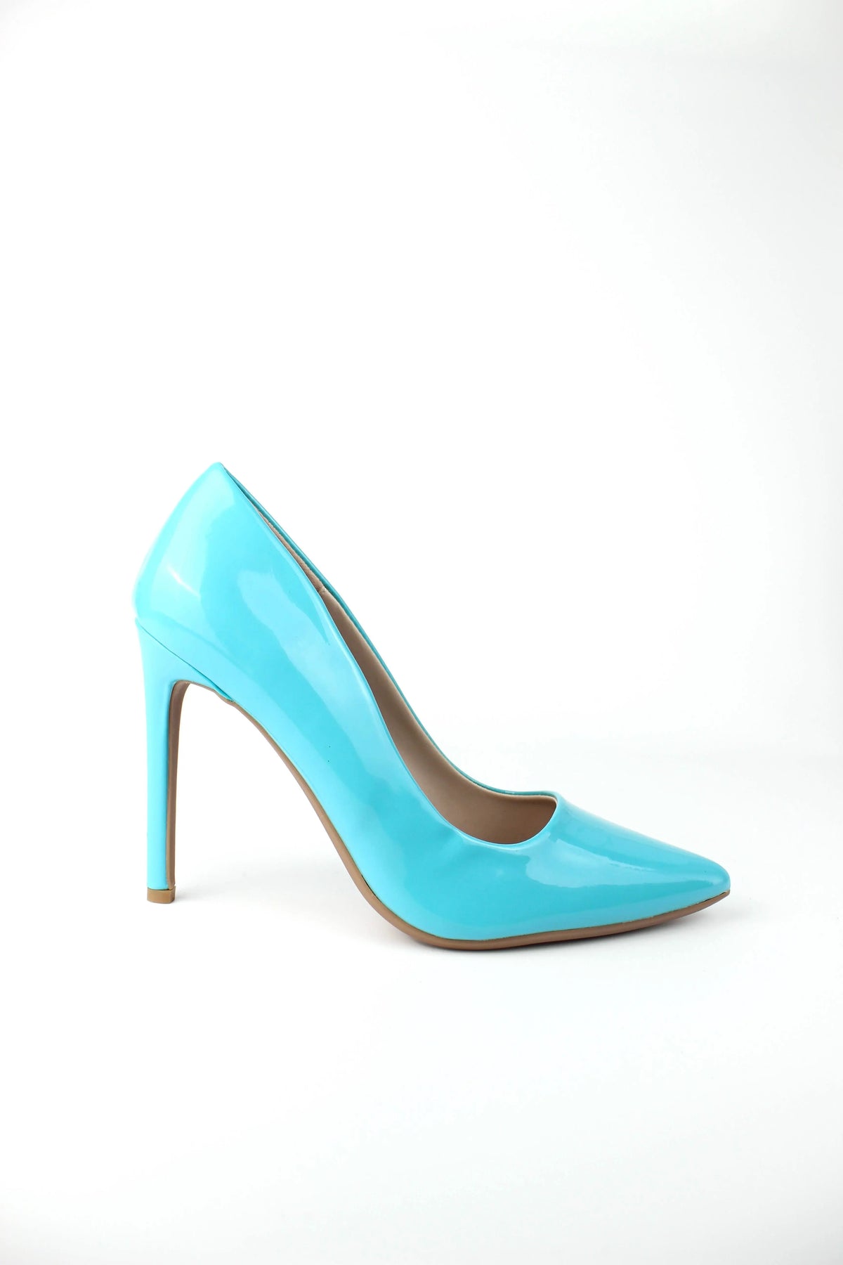 Décolleté in vernice, punta affusolata e sottile tacco alto a spillo.