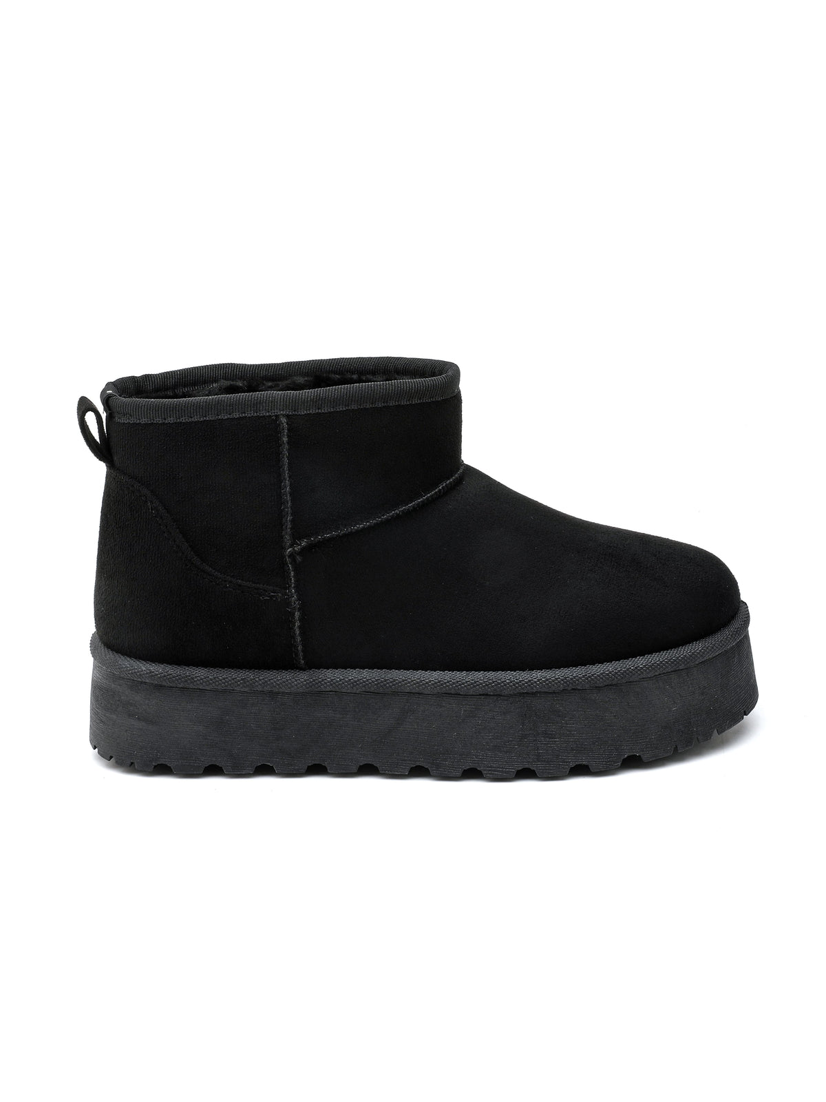 Stivaletto ISABAC in tessuto scamosciato, suola spessa, foderato in shearling bianco per garantire comfort e calore.