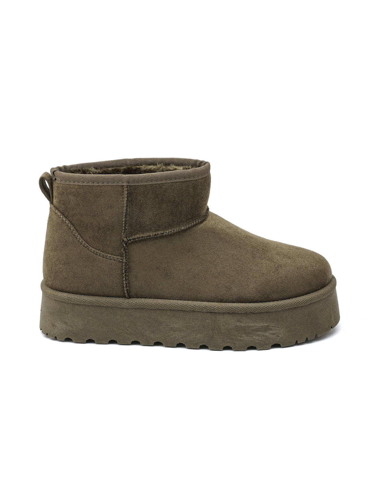 Stivaletto ISABAC in tessuto scamosciato, suola spessa, foderato in shearling bianco per garantire comfort e calore.