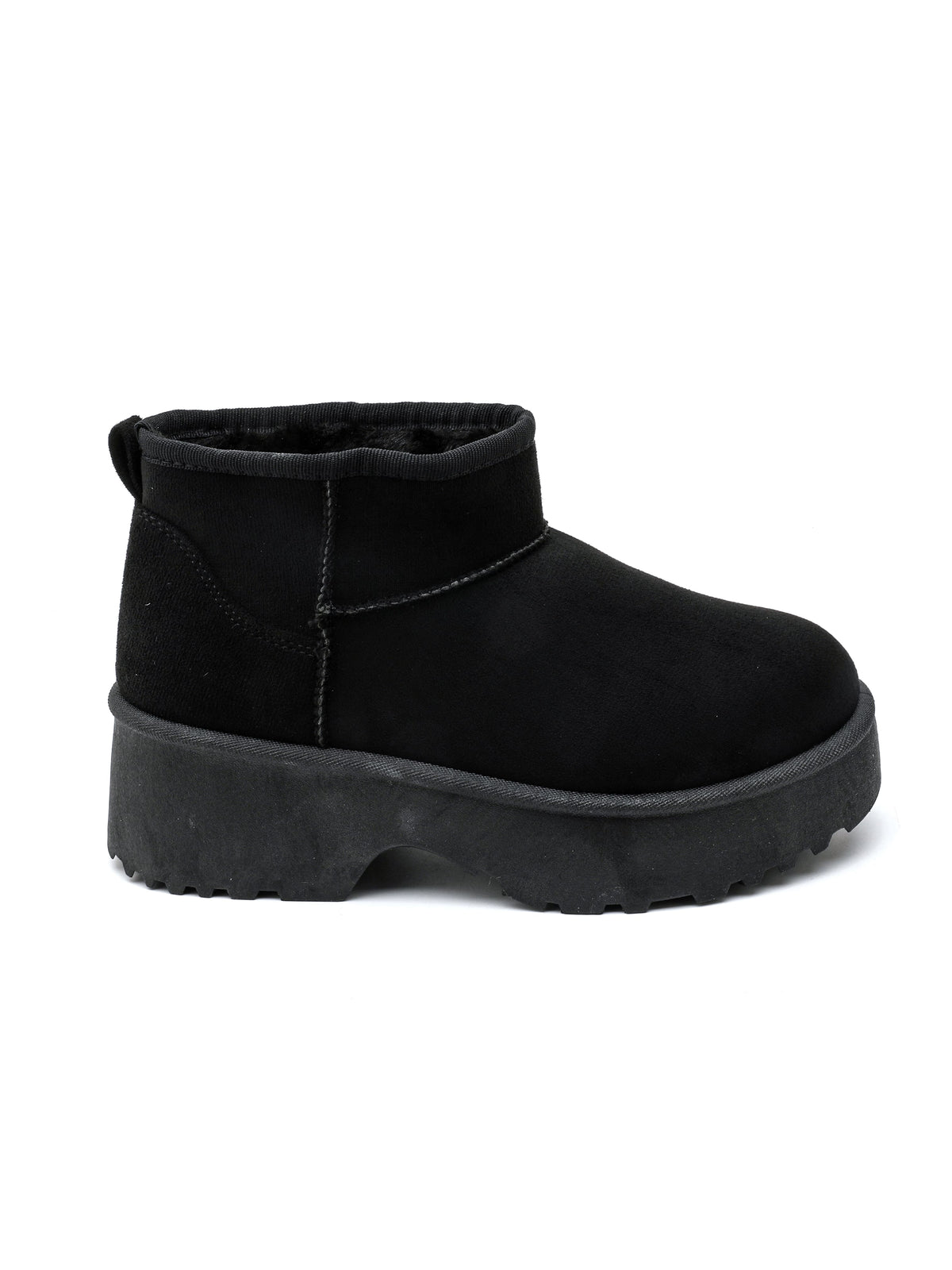 Stivaletto in ecopelle scamosciato, suola spessa in gomma sagomata.