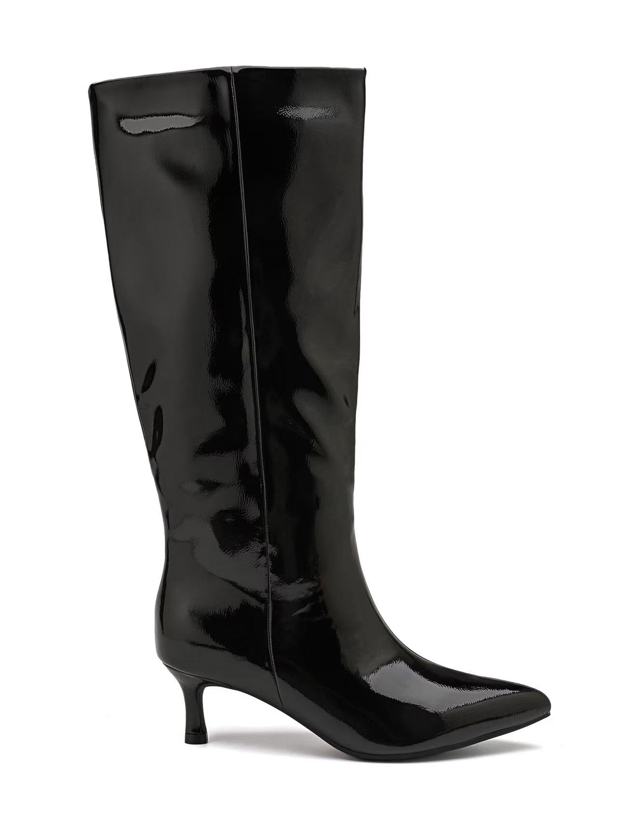 Stivale in ecopelle alto al ginocchio, punta affusolata e tacco basso kitten.